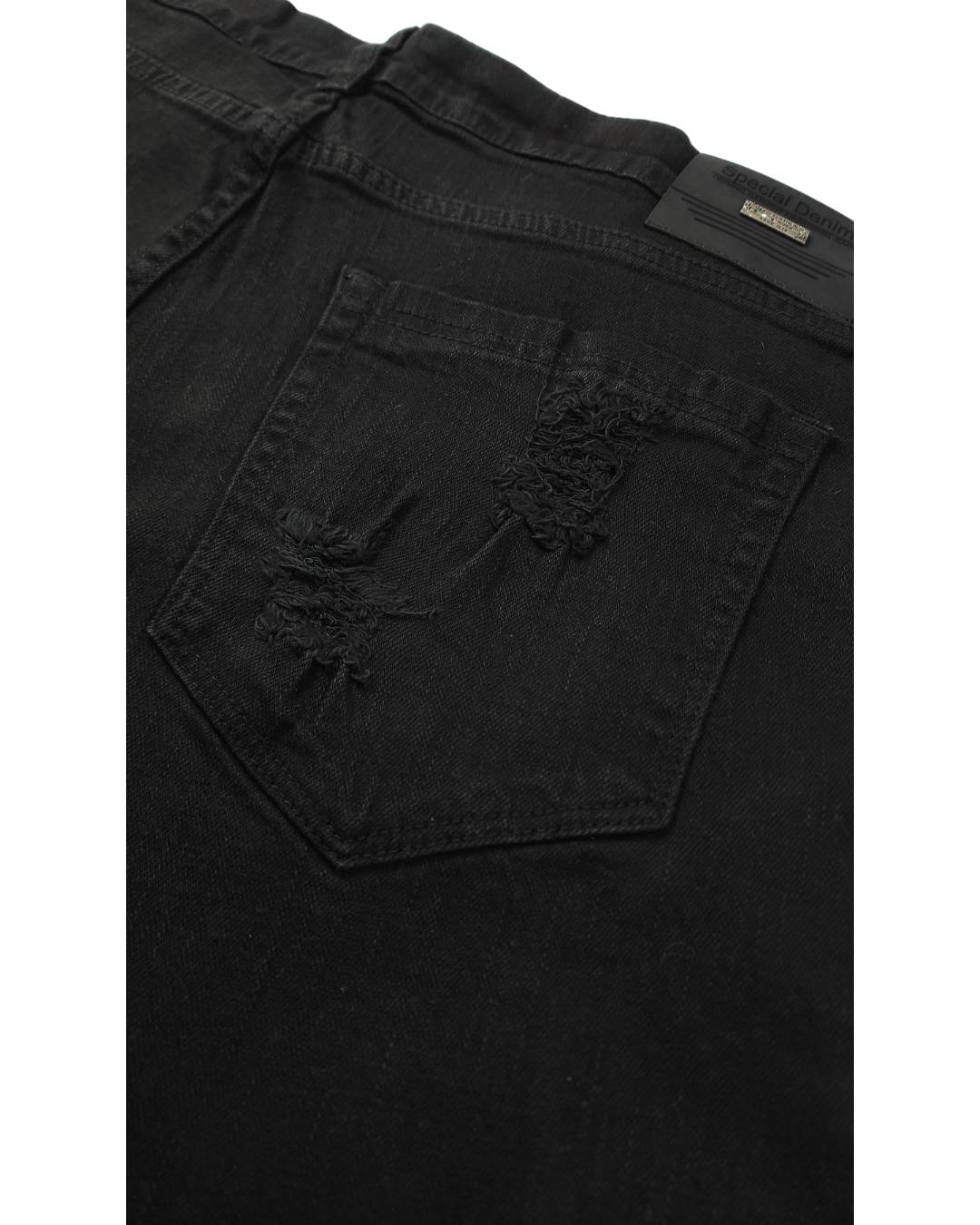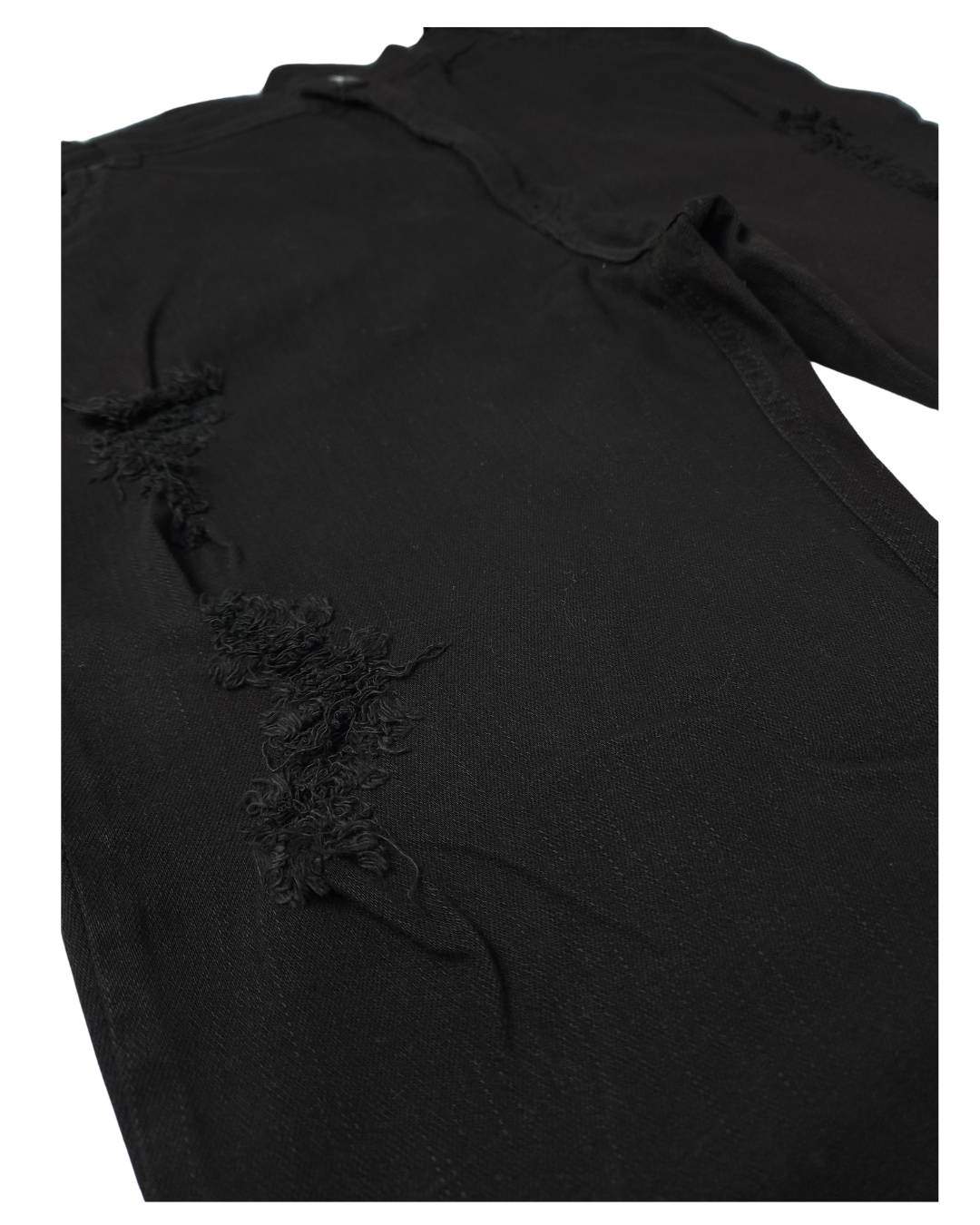 Su color negro uniforme lo convierte en una base versátil, mientras que los rotos en delantero y bolsillos traseros aportan un estilo urbano marcado, ideal para destacar sin perder equilibrio.
