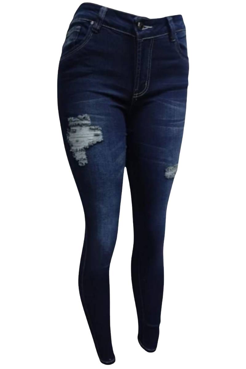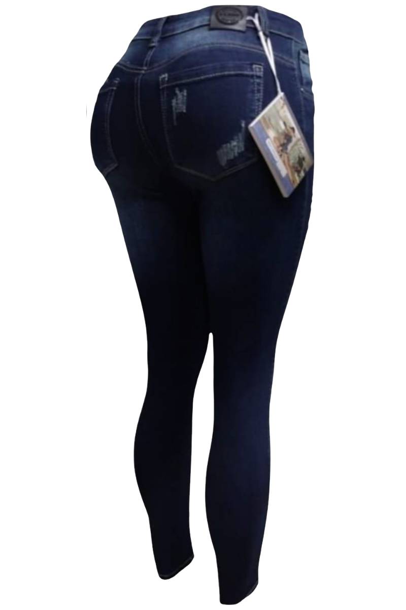 Confeccionados en un denim de color azul oscuro, cuentan con muy buena elongaciĂ³n (licrado), lo que garantiza comodidad y sujeciĂ³n simultĂ¡nea.