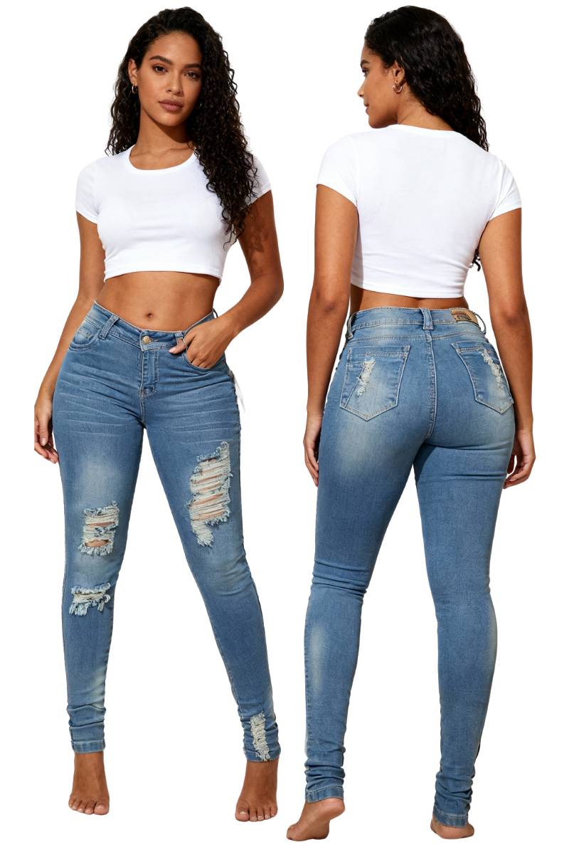 Ideales para las mujeres que aman el full ajuste, estos jeans están confeccionados con un denim licrado de muy buena elongación, lo que garantiza que, aunque el calce sea muy ajustado, la prenda ofrece comodidad y permite el movimiento, actuando como una “segunda piel” una vez puesto.